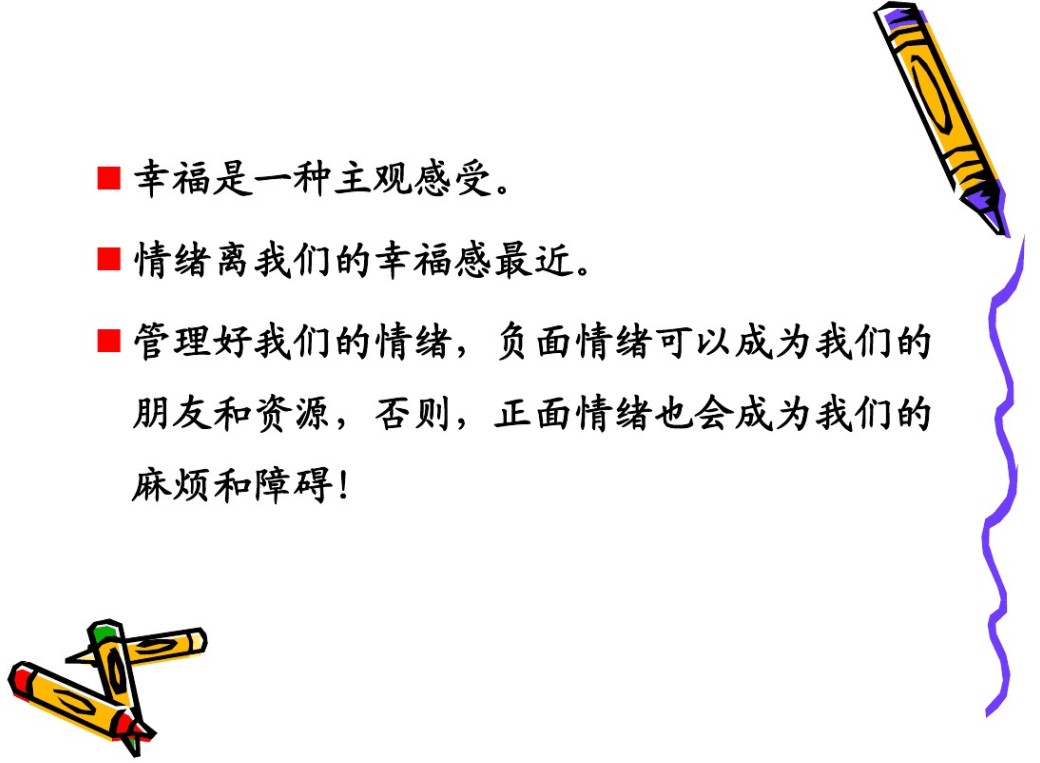 只要是有生命的載體,都會(huì)有情緒,情緒是個(gè)人的內(nèi)心感受和主觀體驗(yàn),是人的各種感覺、思想和行為綜合的心理及生理反應(yīng)。培訓(xùn)走進(jìn)企業(yè),讓更多員工直接受益,請大家務(wù)必珍惜這次來之不易的學(xué)習(xí)機(jī)會(huì)!